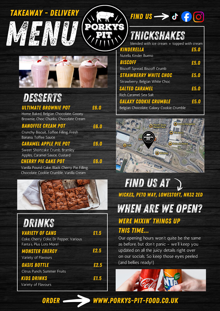 Deliveries & Takeaway Telephone 07741 239525 See MENU & Order find us at Wickes, Peto Way, Lowestoft NR32 2ED For opening hours, please check us out on Facebook!
